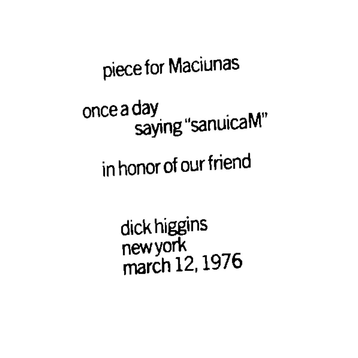Dick Higgins, Piece for Maciunas, 1976. From maciuNAs V TRE, May 2nd, 1976.