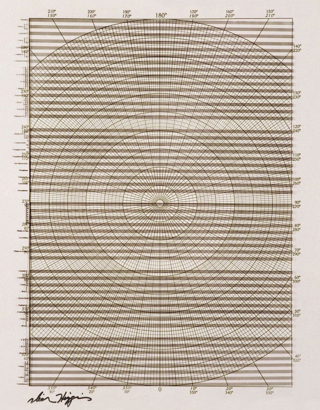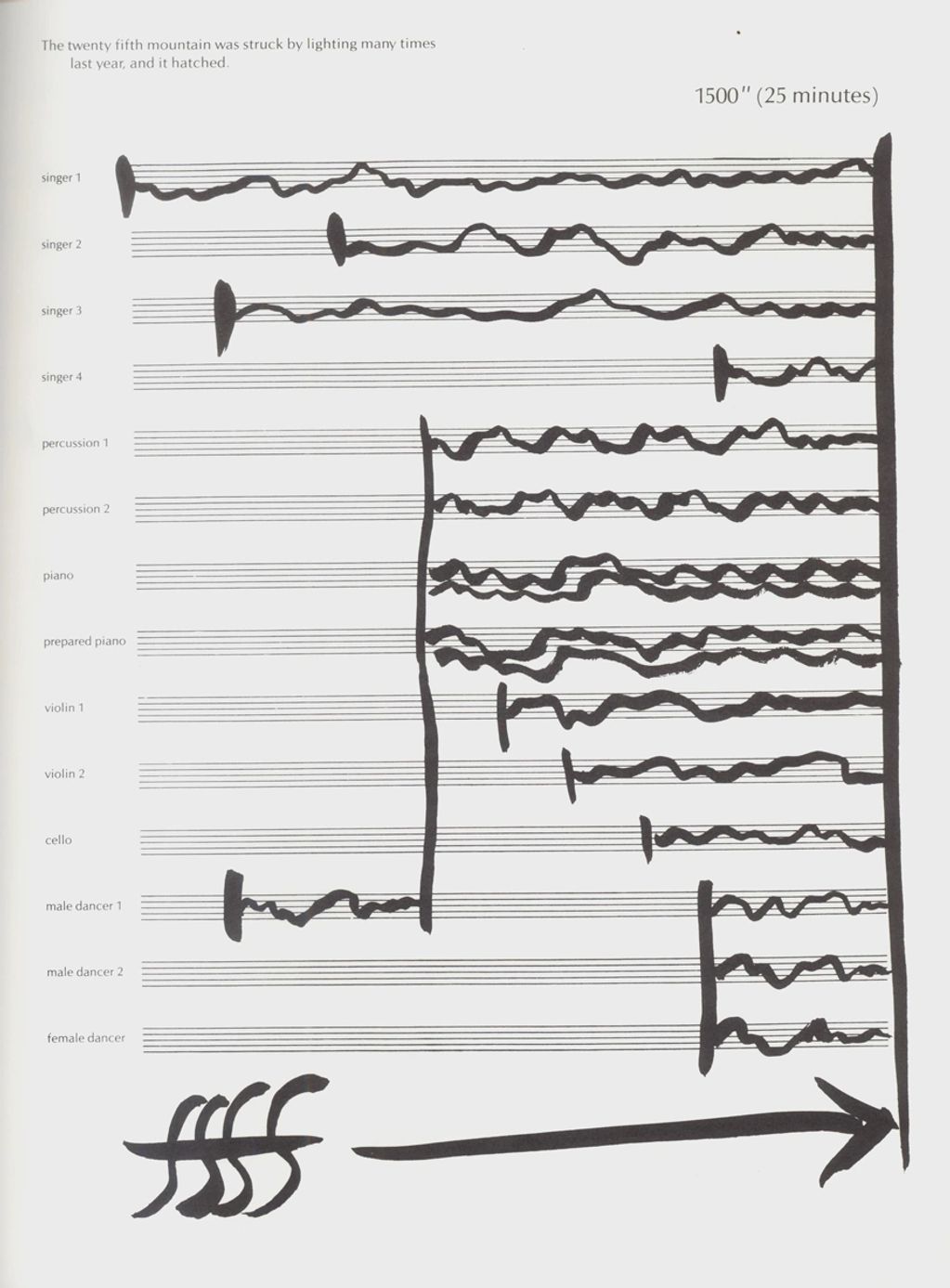 "Graphis #143 (Softly for Orchestra) and #144 (Wipeout for Orchestra) came along more or less together. In July 1967, as a stage toward making another work, I held up a transparent positive of a sheet of music paper I had been working on, and noticed, once again, how whatever was behind it could be treated as musical notatio