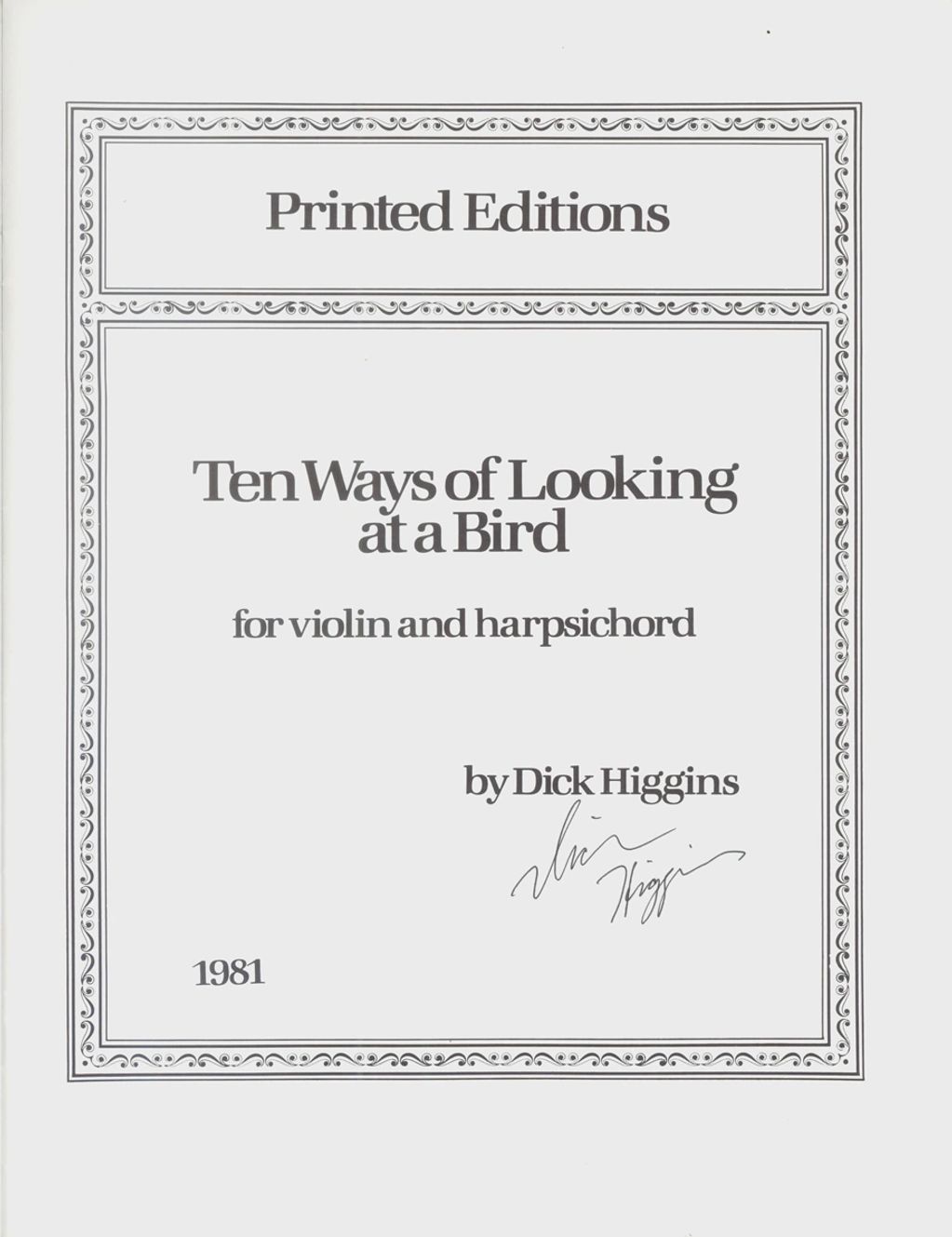 Dick Higgins, "Ten Ways of Looking at a Bird for Violin and Harpsichord," Printed Editions, 1981