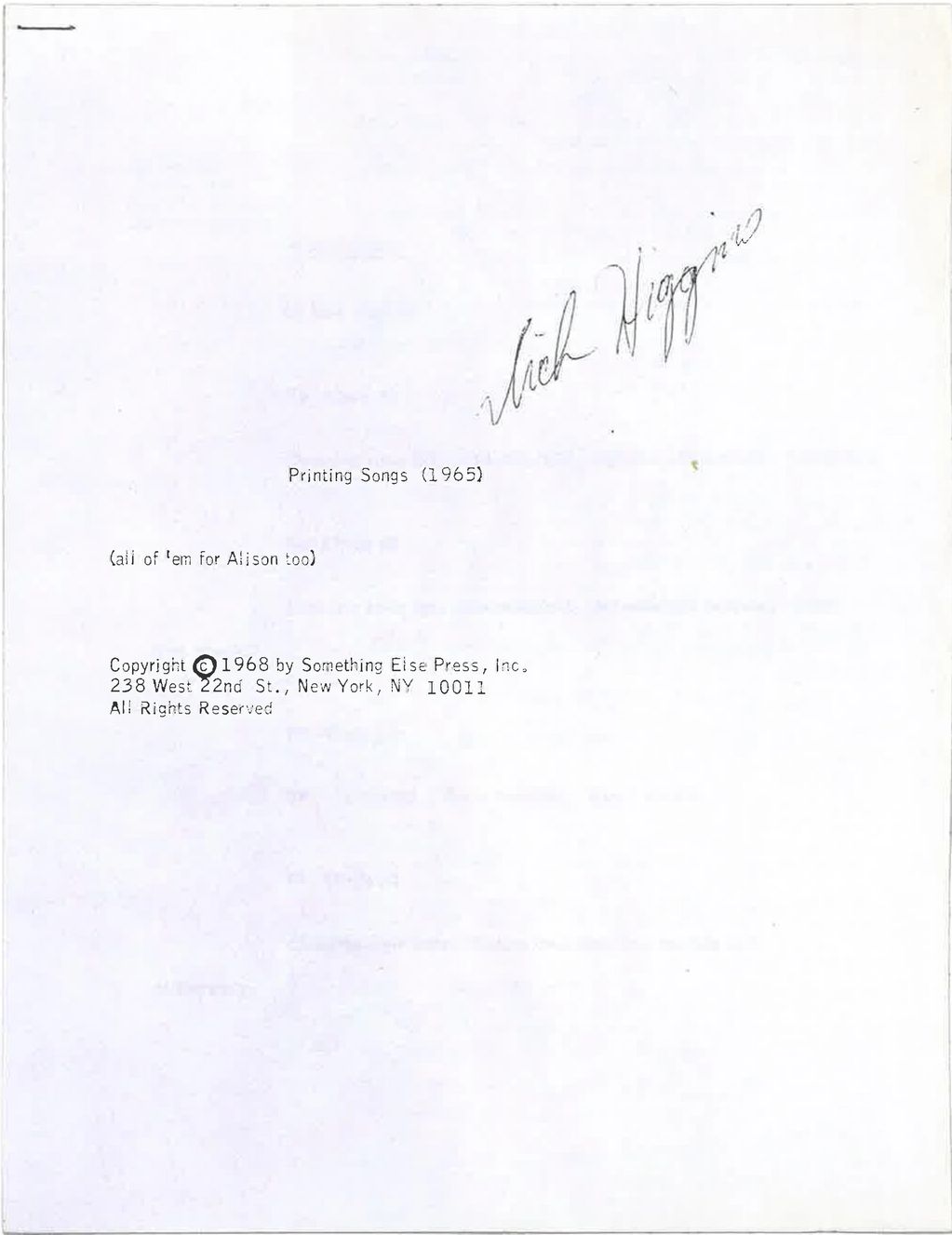 Dick Higgins, "Printing Songs (all of em for Alison too)" 1965.