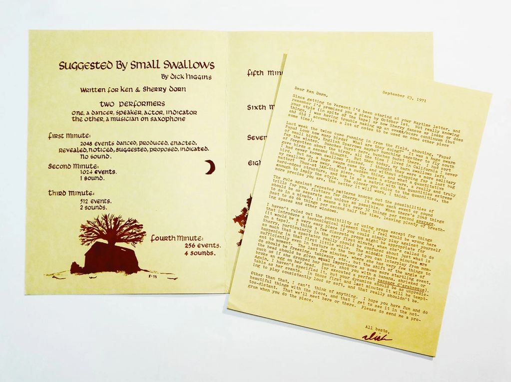 Dick Higgins, "Suggested by Small Swallows (for Ken & Sherry Dorn)," Dorn Productions, 1973